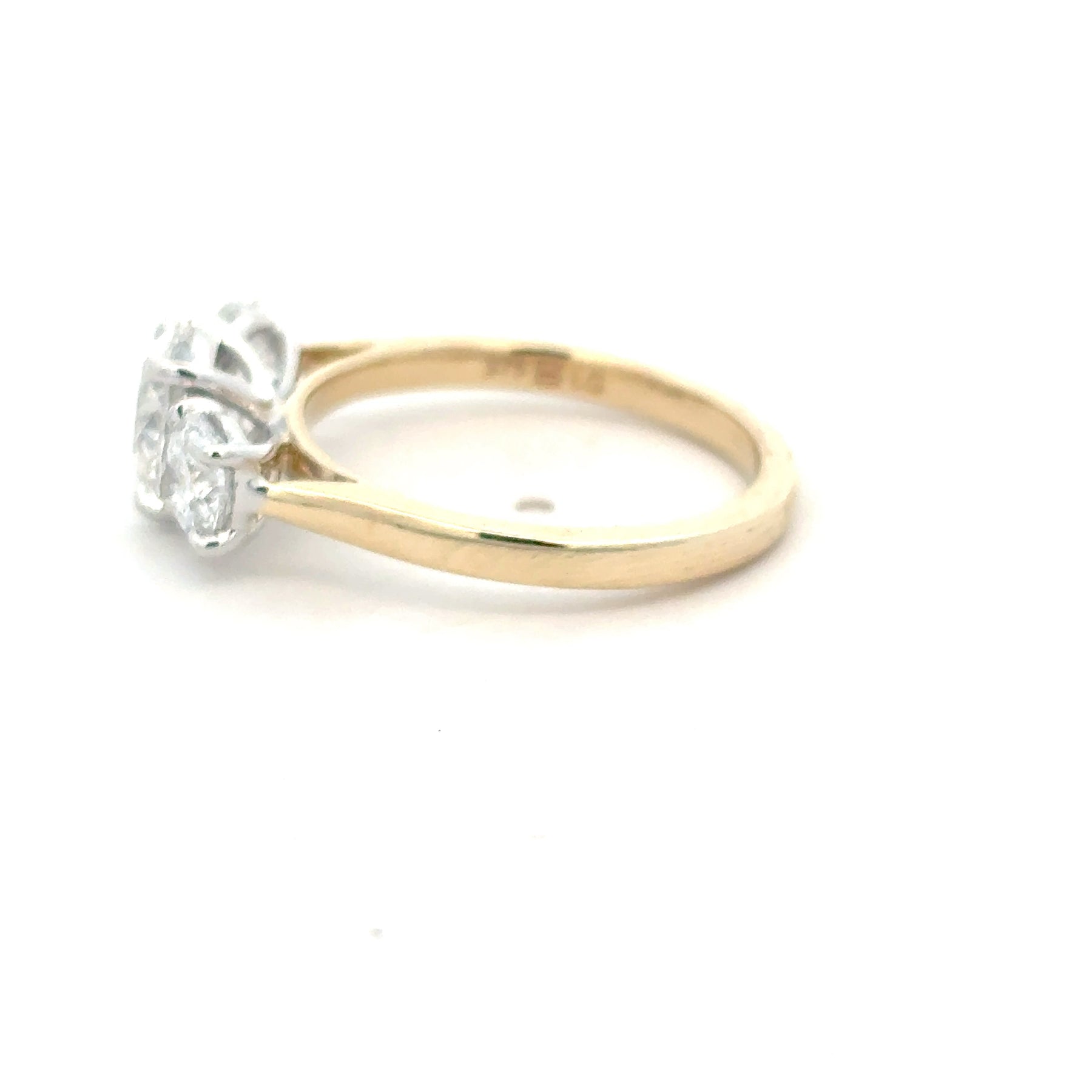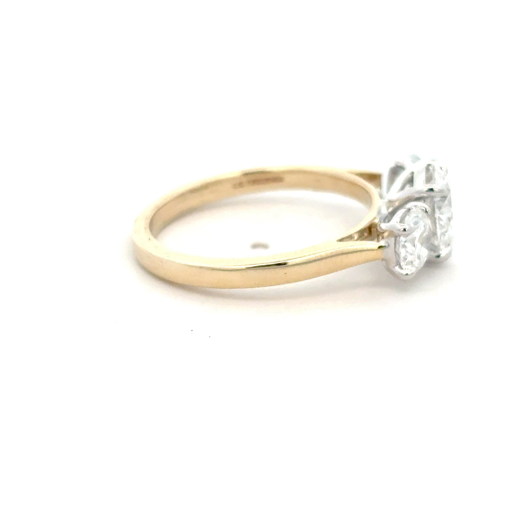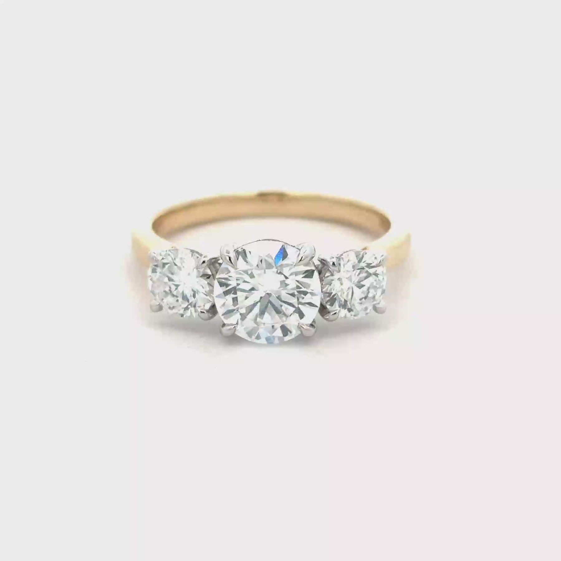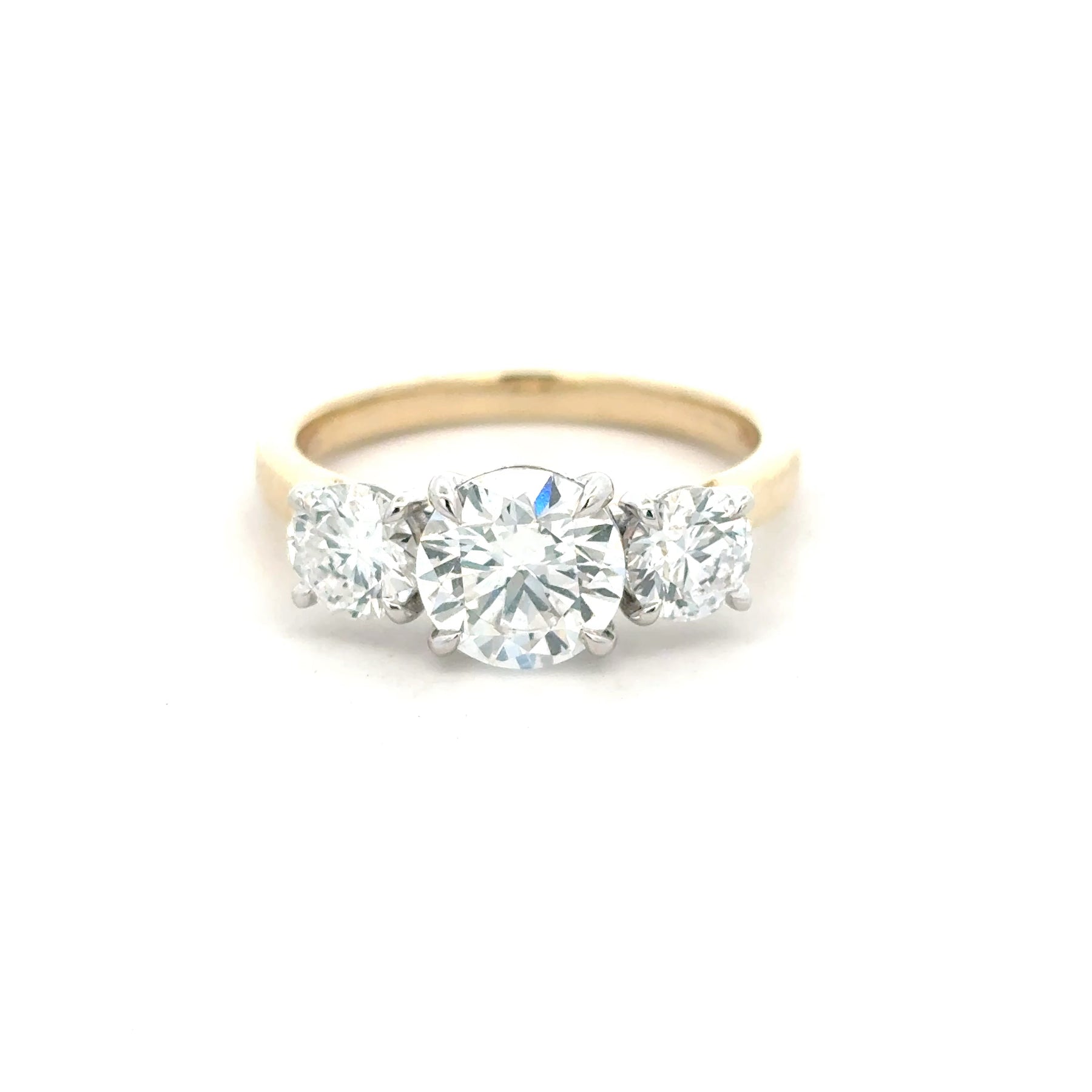 This exquisite ring features a timeless trilogy design with a classic yellow gold band. The 1.5CT centrepiece is a brilliant round cut Lab diamond, complemented by additional 1CT Lab diamonds on either side, creating a harmonious balance of sparkle and elegance. A stunning piece ideal for celebrating life's special moments.